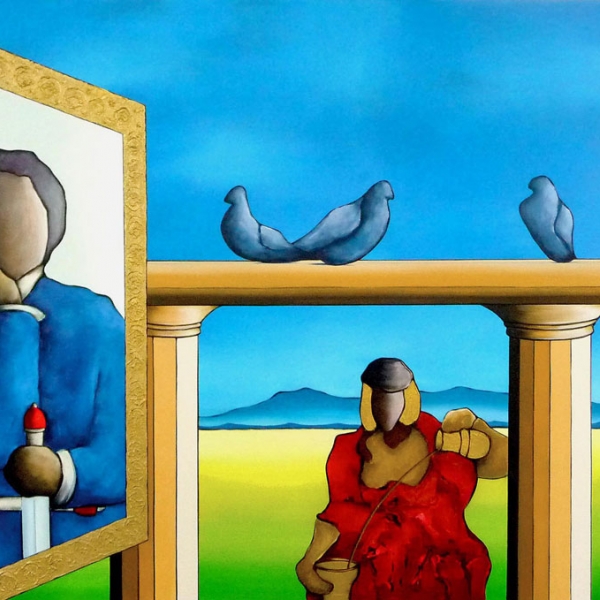 Jedem der Bilder gingen zahlreiche Skizzen voraus, in denen Heinz Felbermair den Persönlichkeiten hinsichtlich Haltung und Gestik im Kontext des jeweiligen Bildraumes nachspürt.