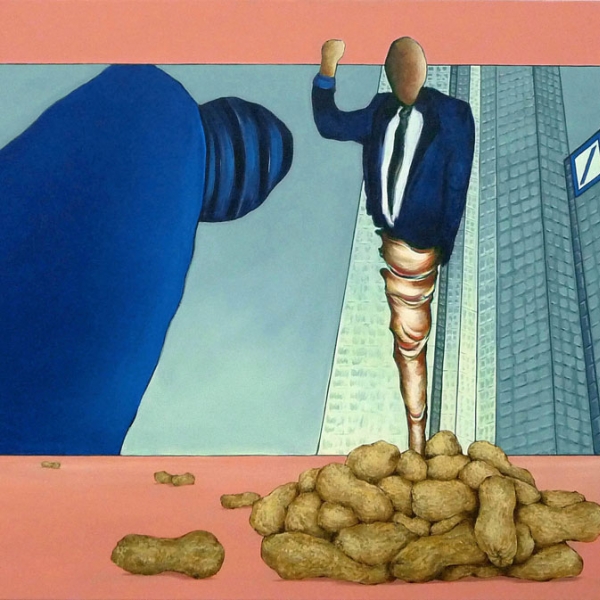 2008 erfolgte der Auftrag für Lenny Fischer, die letzten 10 Jahre der Wirtschafts- und Immobilien Krise künstlerisch zu gestalten. Es entstand ein Triptychon von 250 x 600 cm. Acryl auf Leinwand. Das Bild wurde in der Ausstellung erstmalig Präsentiert.