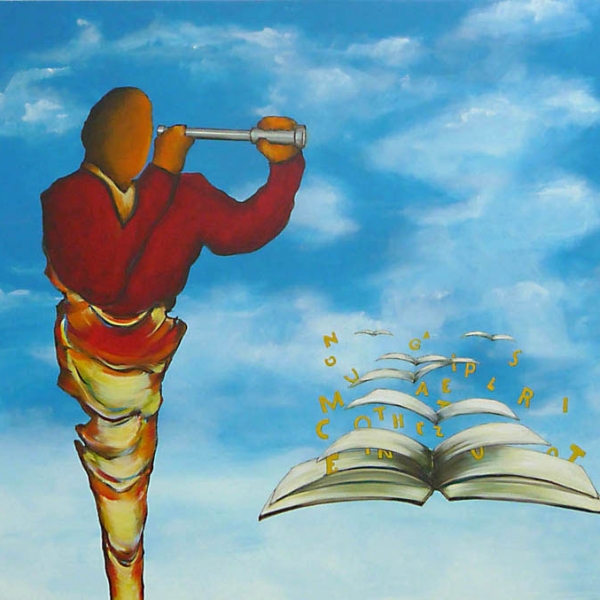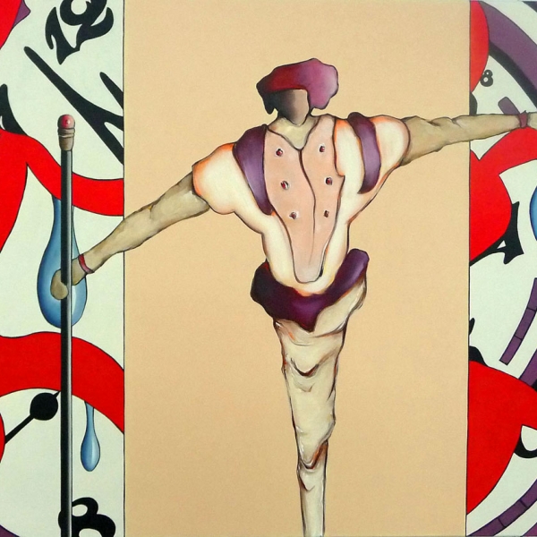 Jedem der Bilder gingen zahlreiche Skizzen voraus, in denen Heinz Felbermair den Persönlichkeiten hinsichtlich Haltung und Gestik im Kontext des jeweiligen Bildraumes nachspürt. Die Gestaltung und schlaglichtartige Modellierung lässt an Bauhaus-Figurinen, wie die „Tänzerin“ von Oskar Schlemmer, denken. In pantomimischem Spiel agieren die Figuren in weiten, bühnenartigen Bildräumen. Der ikonographischen Vielfalt sind dabei keine Grenzen gesetzt. So erscheinen ihre Silhouetten mal als scharf modellierte Kokons auf spindelartigen Stelzen, mal als humorvolle Gliederpuppen oder als kräftige, muskulöse Schattenfiguren, die mit ihren Attributen spielen. Die Darstellungen der modernen Titanen sind so vielfältig wie ihre Lebenswege selbst.